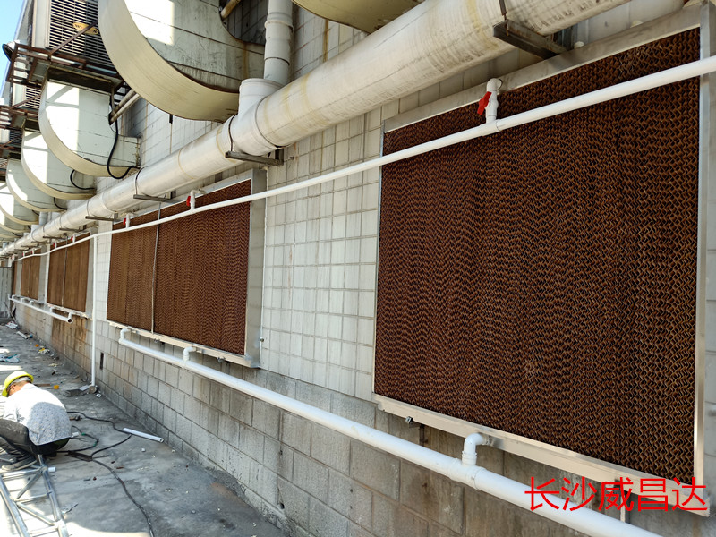 厂房降温设备水帘风机利用水的蒸腾制冷在咱们日子中使用已经很广泛,水涂在皮肤外表风一吹就感受很凉爽,这即是蒸腾过程;水吸收了空气中的热量,使空气温度降低。厂房降温设备水帘风机降温原理是利用主一种自然现象,将高科技与蒸腾制冷技能相结合,开宣布集制冷、环保、节能于一身的空调机。降温核心水帘纸是瑞典的专利产品,它是经特殊处理的“波纹纤维纸叠合物”。其特点是:有杰出的吸水功能和通风功能,实践换热面积挨近外表积的100倍;质地健壮、耐水浸泡而不变型;耐腐蚀,正常使用寿命到达*少10℃的降温作用。 “多层波纹纤维叠合物”湿帘对空气中的微尘具有杰出的功能,如室外严峻污染,可外加过滤尘网,湿帘经自来水冲刷外表构成湿帘水膜,可自行清洗,因此完成洁净与降温。